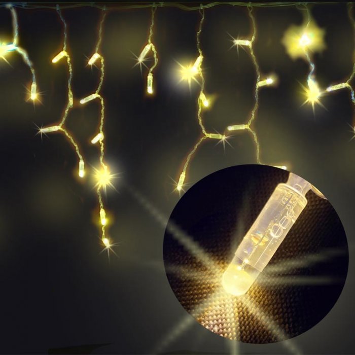 Светодиодная бахрома легко монтируется, хорошо выдерживает ветровые нагрузки, дождь, морозоустойчива, степень зашиты от воздействия внешних факторов IP 65. Благодаря прозрачному кабелю, бахрома практически не заметна днем, а в темное время суток поражает чистым, ярким свечением без искажения цвета.