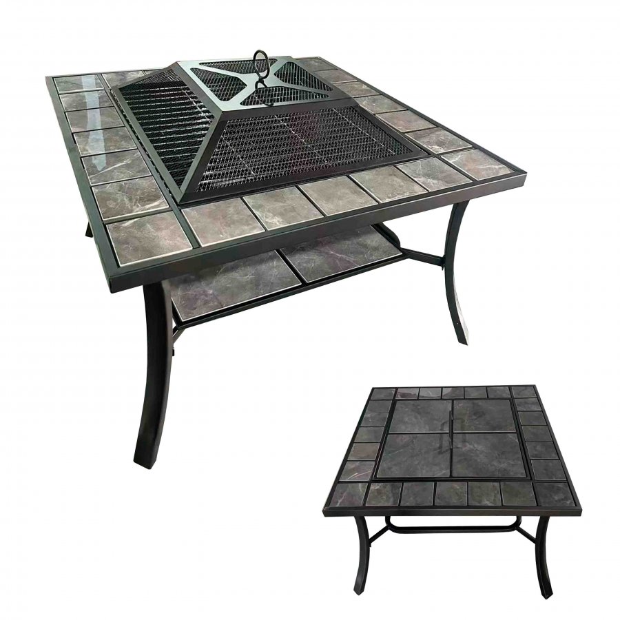 | Состав комплекта, шт | стол 1 (в комплектации стола - жаровня (чаша 1, решетка 2, сетчатая крышка 1, кочерга 1), крышка под керамогранит 1, плитка керамогранит, чехол 1 |