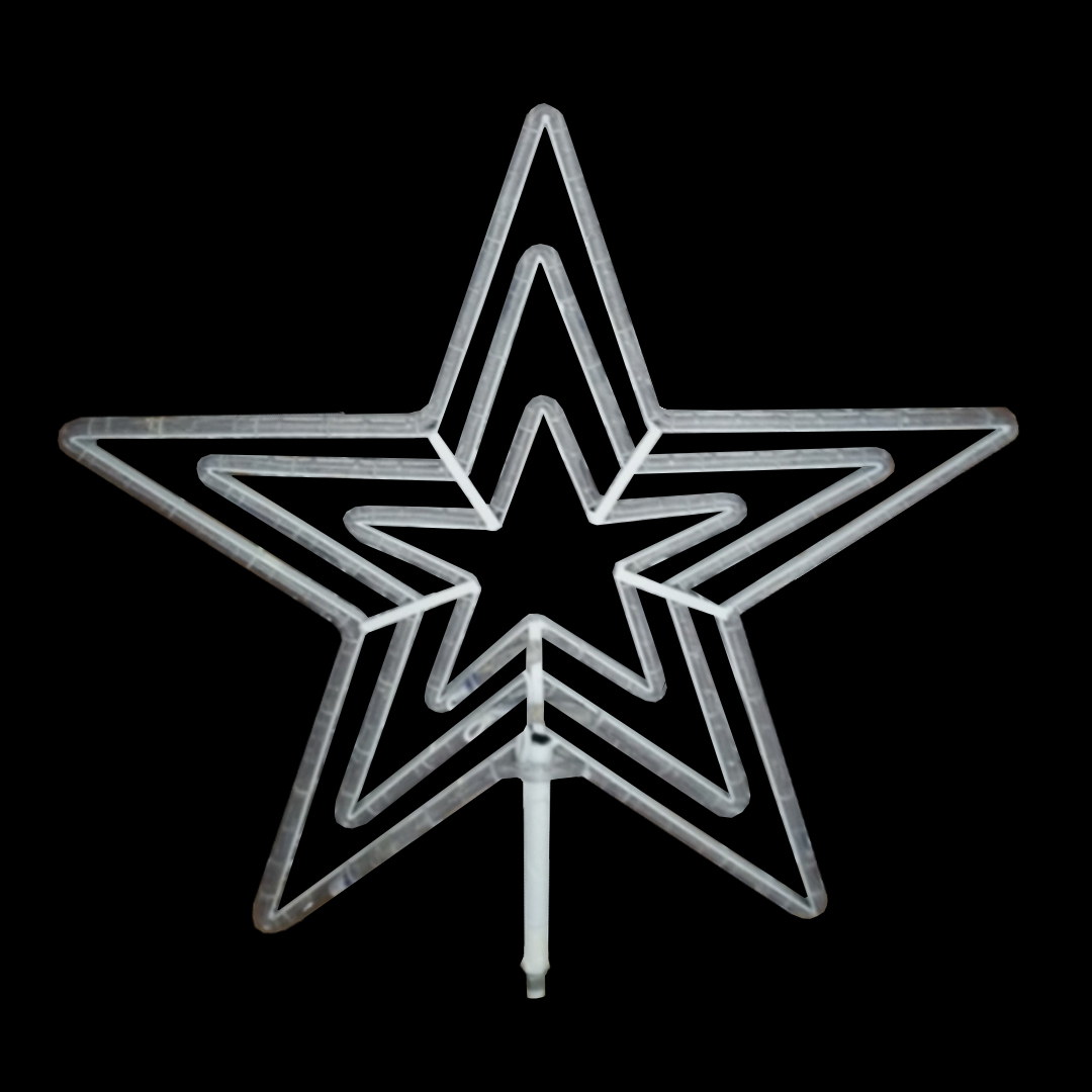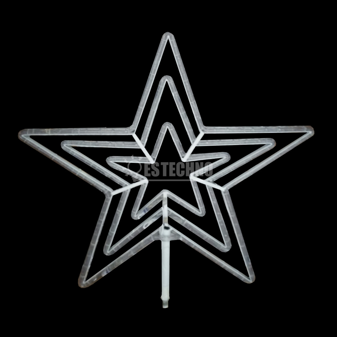 Светодиодное украшение для уличных ёлок, (макушка новогодней ели), фасадов зданий и входных зон. Плоские светодиодные декоративные элементы (2D) из сварного металлического каркаса и подсветки светодиодным шнуром, имеют штангу для крепления из металлической трубы диаметром 16 мм длиной 30 см , вы без особого труда сможете закрепить на каркасной ёлке либо на прочих поверхностях по своему усмотрению.